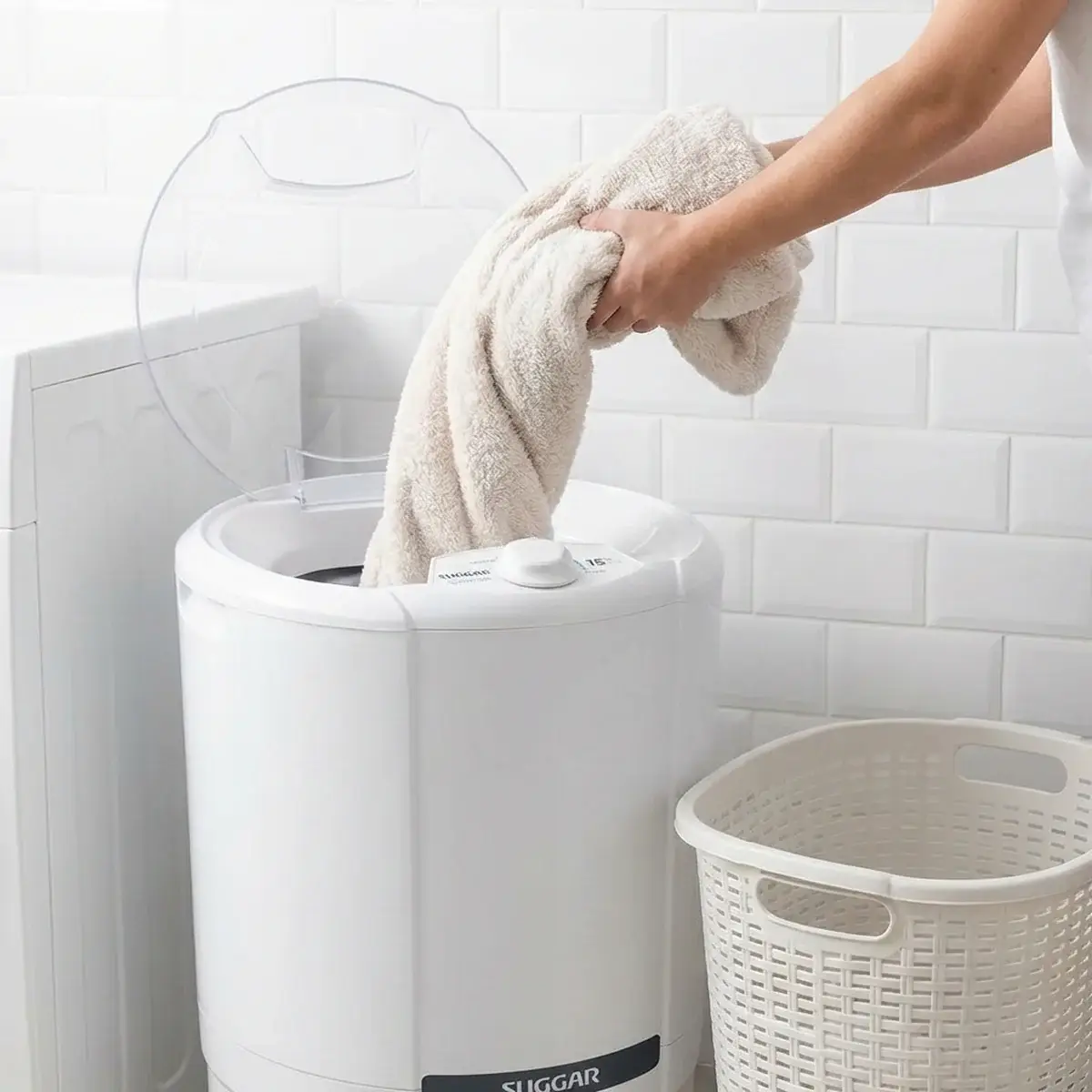 A Centrífuga de Roupas Suggar Giromax 15kg é a solução ideal para quem quer roupas quase secas em poucos minutos, com praticidade e segurança. Com alta eficiência de 1750 RPM, ela centrifuga em até 6 minutos, deixando as peças prontas para estender e acelerando a rotina da lavanderia.