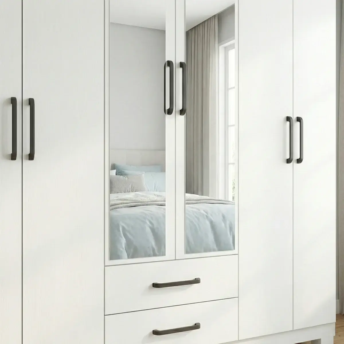 O Guarda-Roupa Áries 6 Portas com Espelho (sem pés) é a escolha ideal para quem quer praticidade, organização e um visual clean no quarto. Na cor branca, ele combina facilmente com diferentes estilos de decoração e ajuda a deixar o ambiente mais claro e harmonioso.